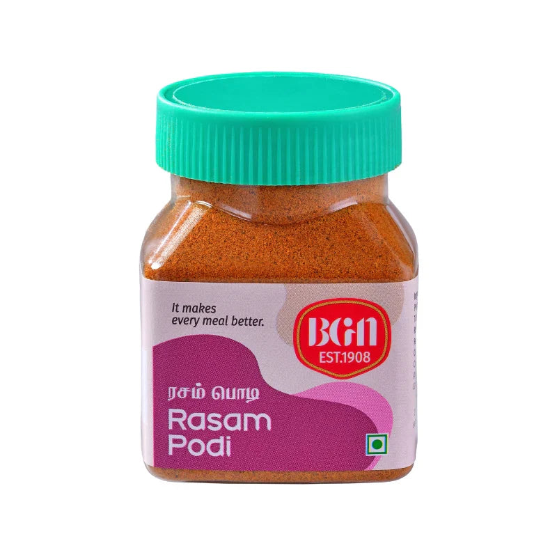 Experience the authentic taste of South Indian cuisine with BG Naidu's Rasam Podi. This traditional spice blend, crafted with premium ingredients, adds a burst of flavor to your meal. Made with a combination of roasted and ground spices, including coriander seeds, cumin seeds, black peppercorns, dried red chilies, fenugreek seeds, and curry leaves, our Rasam Podi captures the essence of South Indian flavors. Order now to bring the warmth and authenticity of South Indian kitchens to your table.