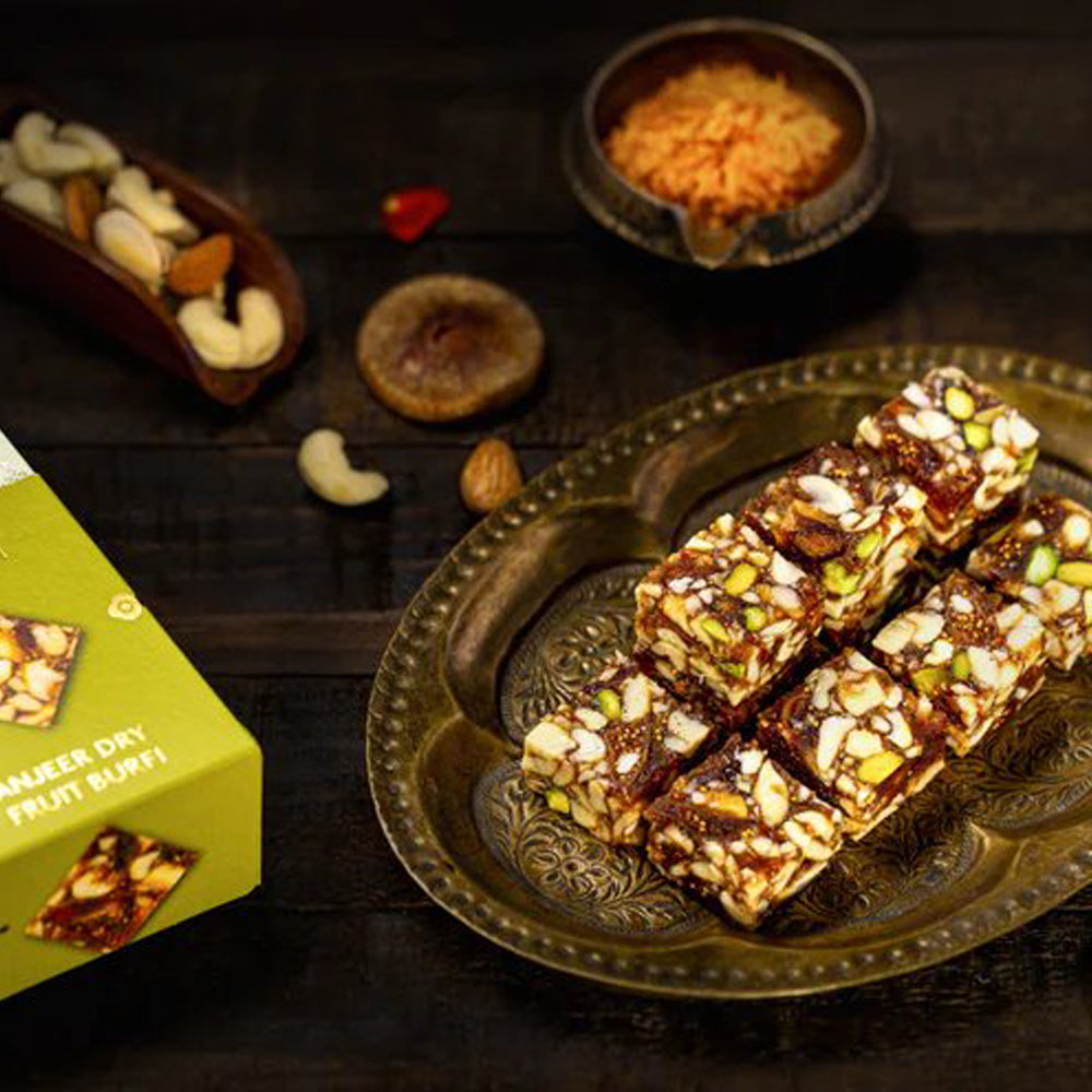 Almond House's Anjeer Dryfruit Burfi is a wholesome and indulgent sweet that combines the natural sweetness of figs (anjeer) with a rich blend of premium dry fruits. This traditional Indian confection offers a delightful fusion of flavors and textures, making it a perfect choice for festive occasions and gifting.