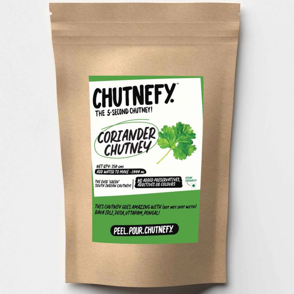 One amongst the Chutney trinity and part of our Staples Range, the Chutnefy Coriander Chutney brings to you that classic flavour that goes perfectly with your crisp Dosai & Vadai & Adai, or a soft and fluffy idli - actually, with anything you\'d like a mild and flavourful accompaniment for!