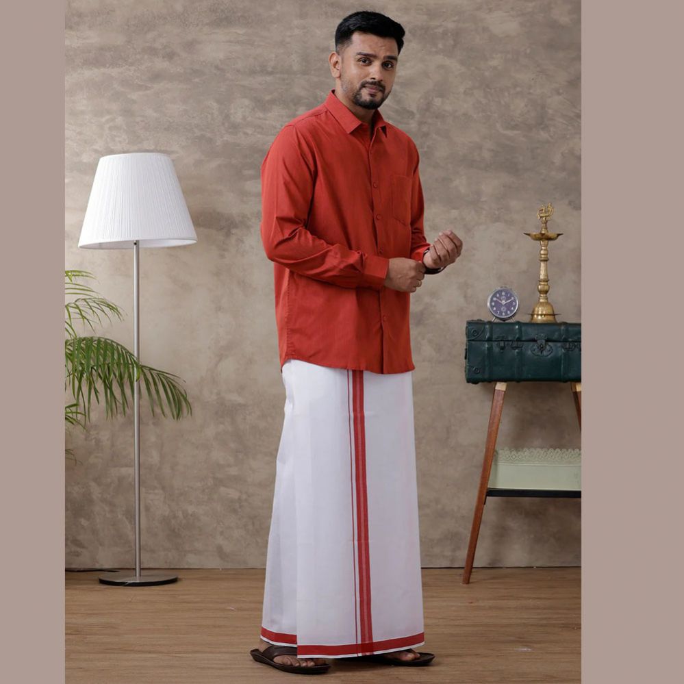 Ramraj's Men's Red Matching Border Dhoti & Full Sleeves Shirt Set Evolution