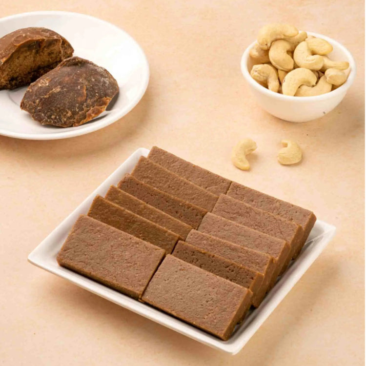 A2B Palm Sugar Kaju Katli is a healthier twist on the classic Kaju Katli, providing the same indulgent experience but with a more natural and less processed sweetness. It's perfect for those looking to enjoy a traditional Indian sweet with a modern, healthier touch.