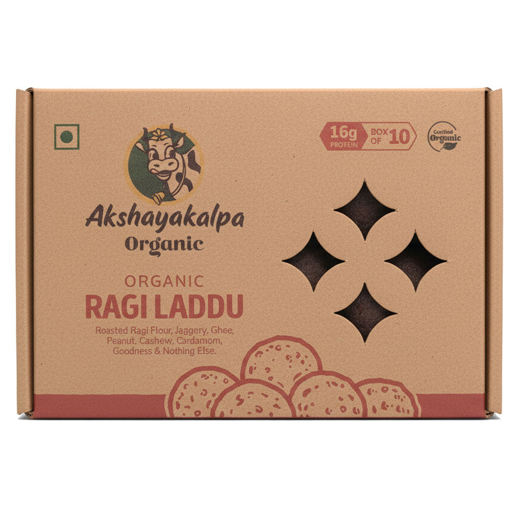 Akshayakalpa Ragi Laddu is a wholesome millet-based sweet made with ragi flour, jaggery, ghee, and nuts, offering a high-fibre, calcium- and iron-rich snack. It delivers the traditional taste of homemade laddus while providing sustained energy and better satiety, making it a healthier option for both festive treats and everyday snacking.