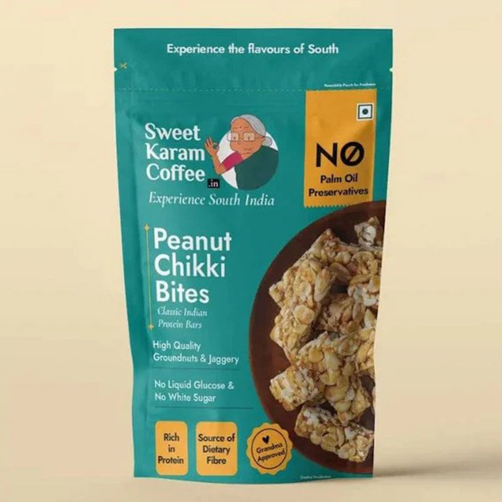 Sweet Karam Coffee Peanut Chikki Bites are a delightful and crunchy treat that combines the richness of roasted peanuts, the earthy sweetness of jaggery, and the aromatic hint of coffee. The bite-sized pieces are perfect for those who love a combination of crunchy and sweet with a hint of bitterness from the coffee, creating an irresistible snack or dessert.