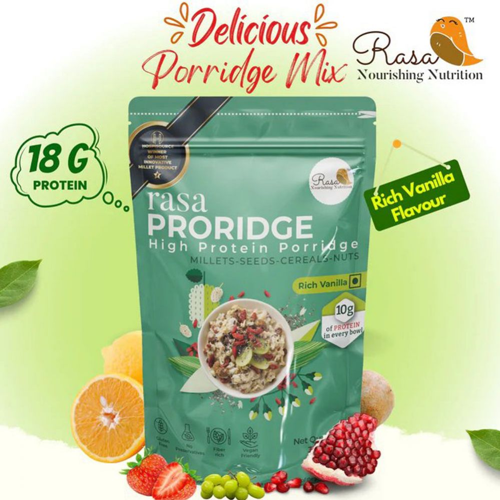 Rasa's Award Winning High Protein Porridge is a unique mix of carefully chosen Millets, pseudocereals, legumes, nuts and seeds to make your breakfast bowl a wholesome one filled with the essential micro and macronutrients.