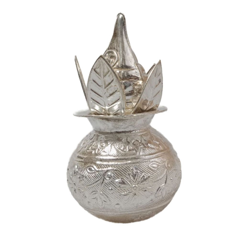 A German silver kalasam is an intricately designed ceremonial pot used in Hindu rituals, symbolizing abundance and prosperity. Made from a durable metal blend, it features a polished finish and often showcases ornate engravings or traditional motifs. The kalasam is typically filled with water or sacred items and placed on altars during pooja ceremonies. Its elegant appearance adds a touch of sophistication to any spiritual setting, making it a cherished item for devotees and a beautiful addition to home decor.