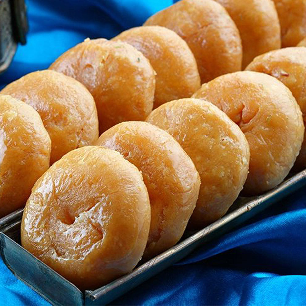 Sree Gupta Bhavan Mini Badusha is a traditional Indian sweet featuring bite-sized, flaky deep-fried pastries soaked in aromatic cardamom and rose-flavored sugar syrup. Known for its rich buttery texture and sweet syrupy taste, this mini version offers a delightful melt-in-the-mouth experience, making it a popular choice for festive occasions and celebrations.